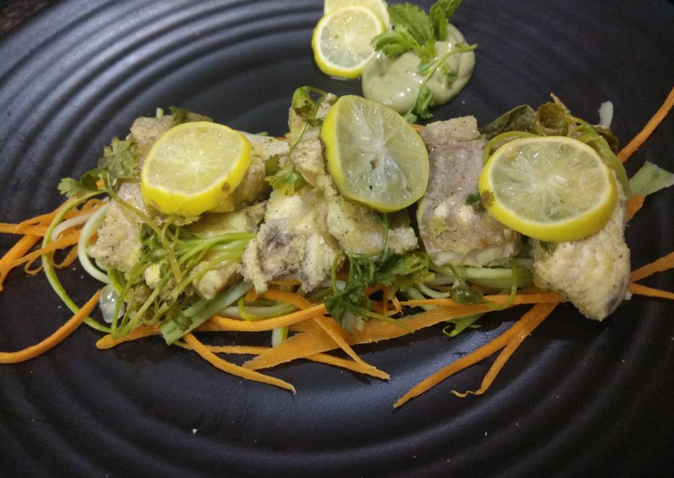 - Ginger garlic and Chilli paste, salt, pepper, coriander powder, juice of 1 lemon, olive oil.