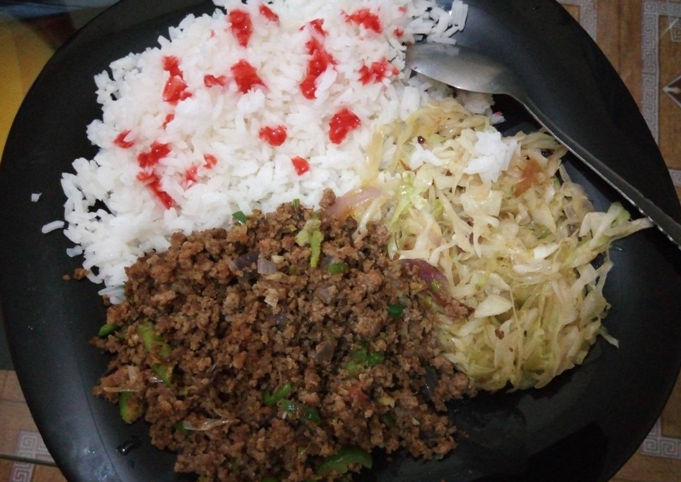 Recipe of Ultimate Steamed rice served with minced meat and steamed cabbage